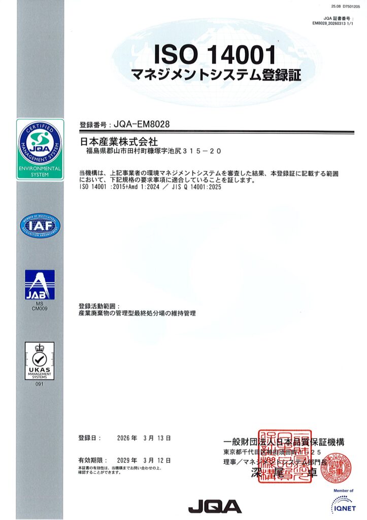 このたび、環境マネジメントシステムの国際規格である、ISO14001:2025の認証を取得しました。